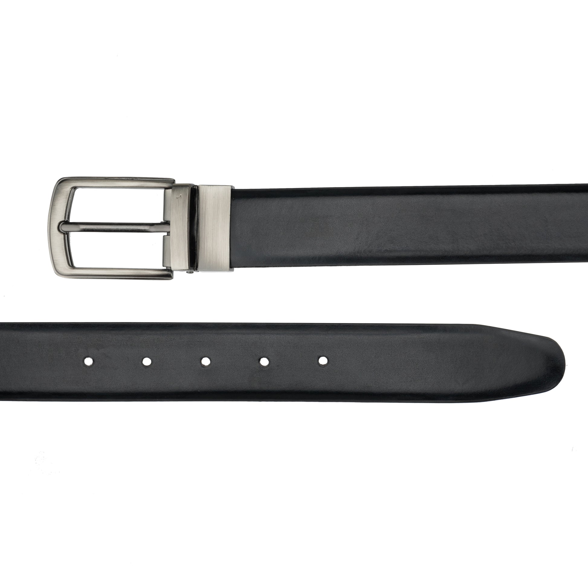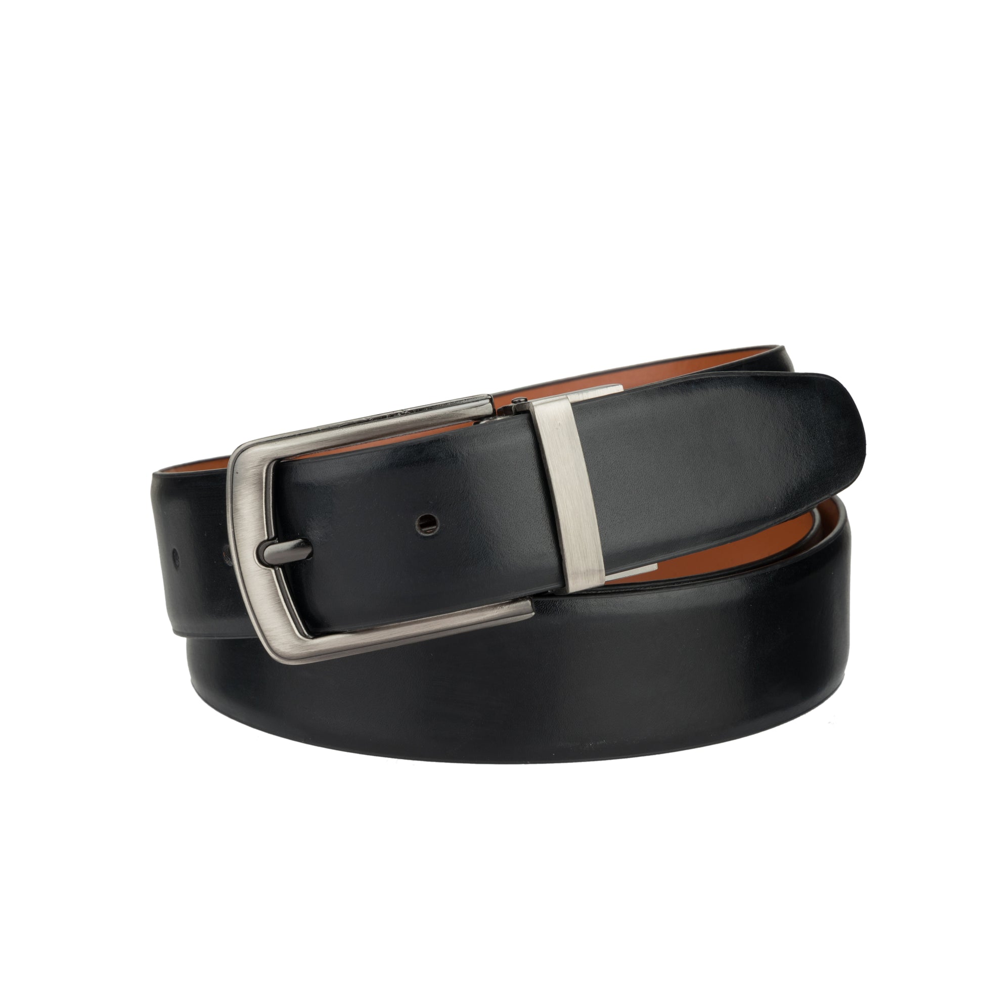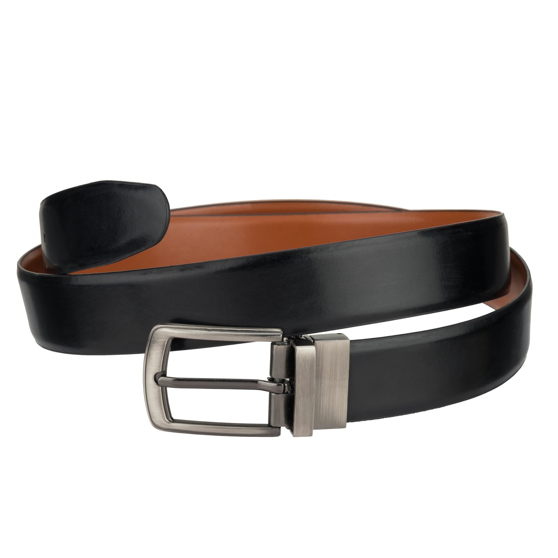 Belts for Men Leather Original, Reversible Black & Bronze Formal & casual Italian Leather Belt with Solid Metal Curved Buckle