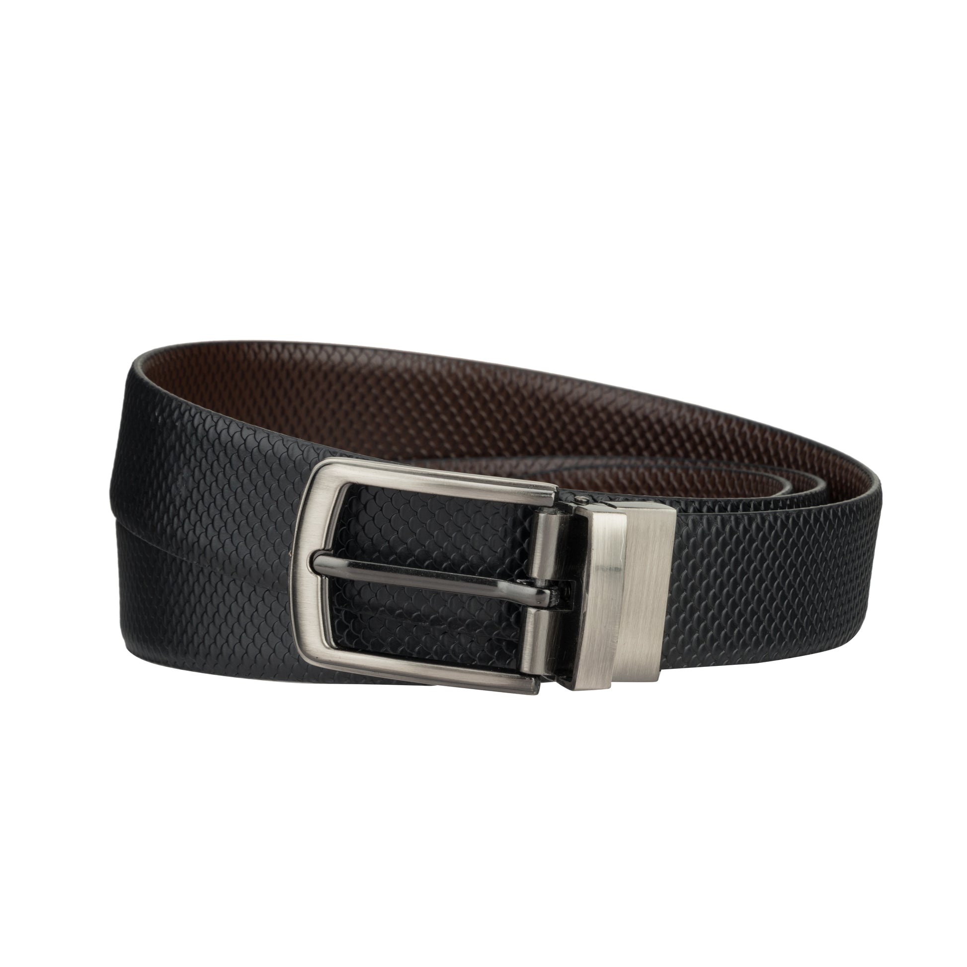 **REVERSIBLE DESIGN:** Enjoy two belts in one! One side is black for formal occasions, while the other side is brown for a more casual look, offering versatility for various outfits.
